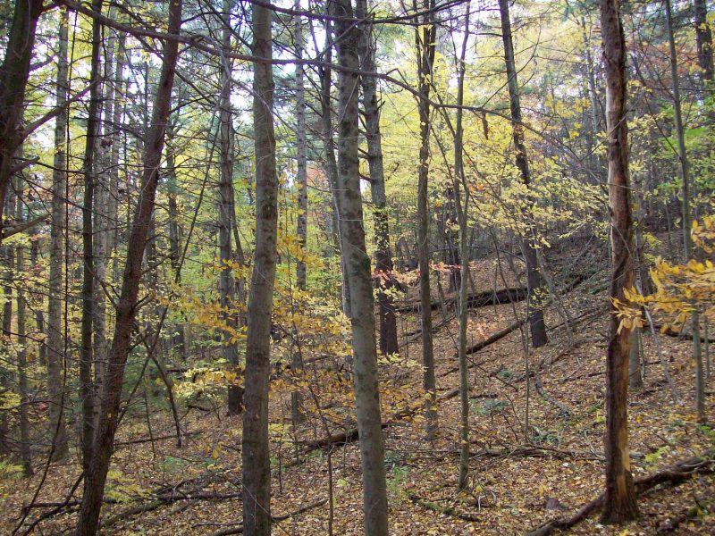 Many of the hardwood forests in the Appalachians have been high-graded. A high-grade is often presented to the landowner as a select or diameter-limit cut. The landowner is told that the biggest and most valuable trees are the oldest trees, and removing them will not only maximize income from the timber sale, but it will also free up the young, small trees so they can grow into big trees. This sounds reasonable, but in reality, size isn’t a good indicator of tree age. Two trees can be the exact same age, but due to genetics, disease, or microsite conditions, one tree could be twice the size of the one next to it. Many of the small trees are exactly the same age as the merchantable trees. In a high-graded forest, after the merchantable trees are removed, the remaining forest is composed of poor quality, often diseased and weak trees — an unhealthy forest.